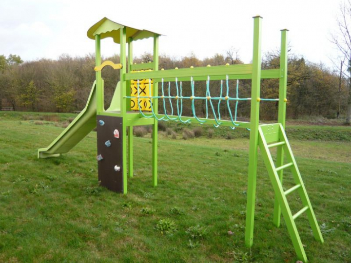 - Structure en aluminium extrudé, épaisseur minimum 2 mm, revêtement époxy polyester, coloris vert